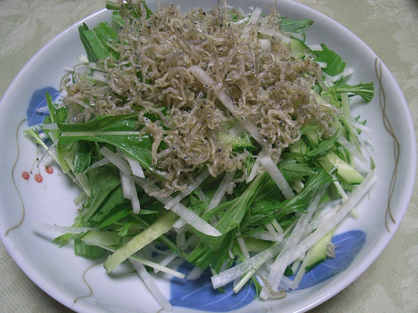 夏大根と水菜のじゃこサラダ 新鮮な野菜サラダはじゃこドレッシングで。