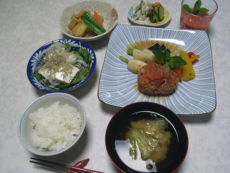 肉や魚は良質のタンパク質とその代謝に関わるビタミンB群を含みます。またその脂肪からは、糖質の倍のカロリーが得られます。食欲のない夏に‘お馴染みのハンバーグ’暑い日差しをいっぱい浴びた夏野菜を焼いたり、蒸したり、煮込んだり・・、お手製のトマトソースをたっぷり使ってお召し上がりください。