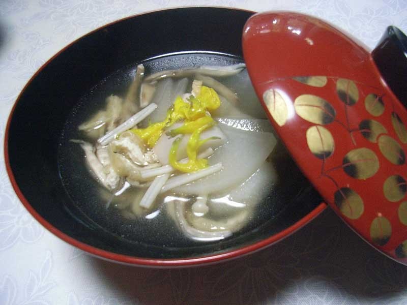 - ◆きのこと根菜、芋、そして食用菊、昆布だし・・からだが喜ぶ食材が一つになった汁ものです。 まずは食事の最初に温かい汁をゆっくり味わってください。からだは食事をとり入れる準備をはじめ、栄養素が効率よく利用できます。