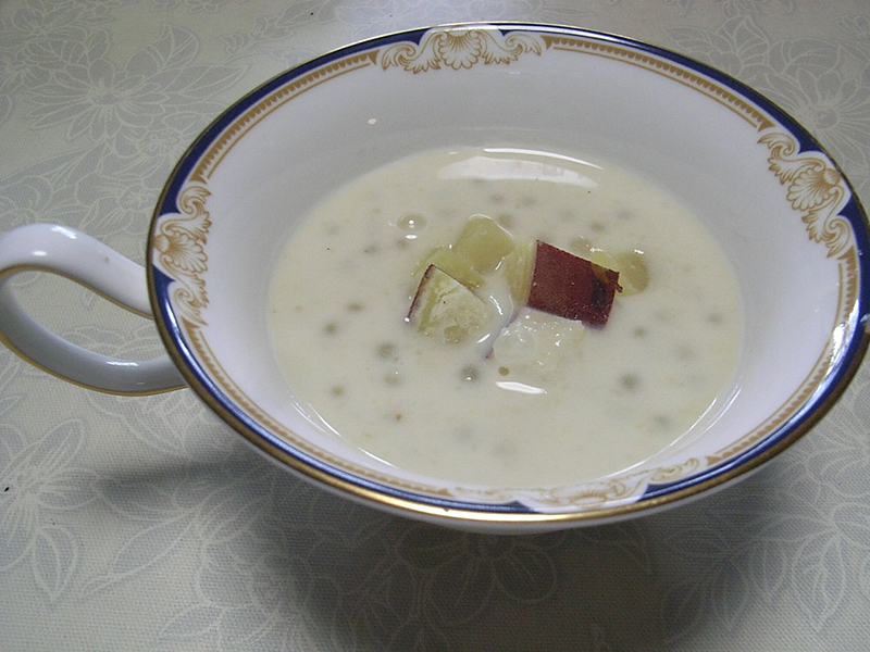 さつまいものココナッツ汁粉 エスニックのデザートを家庭の味に工夫しました。