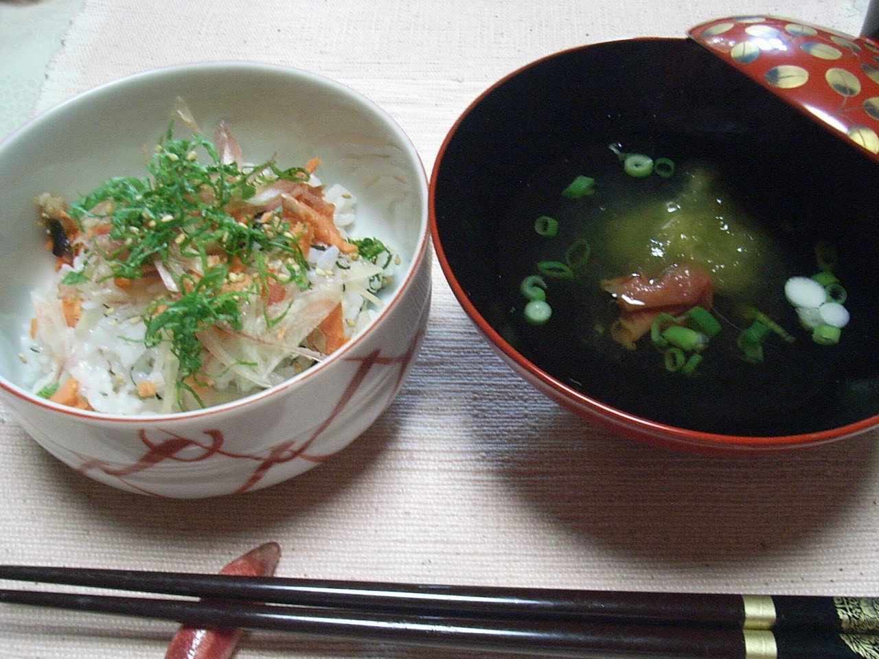 さわやかご飯 塩鮭に夏の香味野菜をたっぷり添えて。