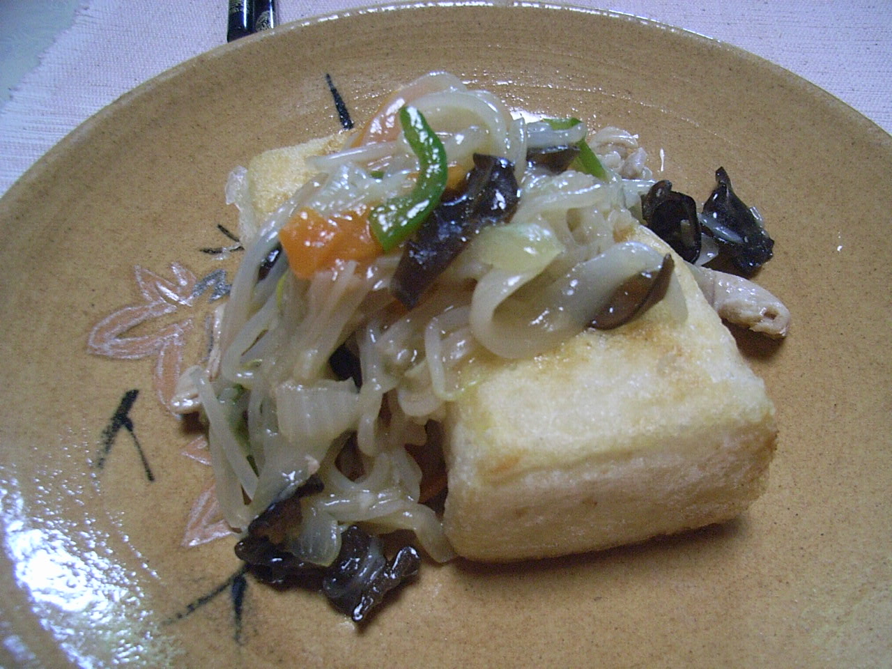 - ◆味のポイントはニンニクと生姜。ニンニクは疲労回復、ビタミンB1の吸収を高めます。豆腐の油焼きに肉と野菜のあんかけをたっぷりかけてどうぞ。豆腐の油焼きは大根おろしや香味野菜を添えてもおいしいです。