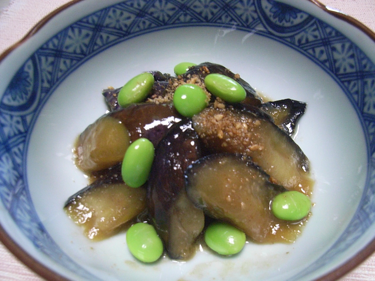- 鍋に油を入れ、茄子を加え良く炒め、砂糖を加え煮えたら、味噌をとかし入れ、よく煮込む。
