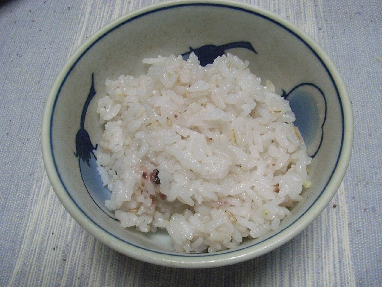 - ◆雑穀ご飯は白米に不足がちなビタミンやミネラル、食物繊維、食べごたえのある麦、玄米、キビ、アワ、などの穀物を、白米と混ぜて炊きました。 主食のご飯・パン・麺類など穀類は、炭水化物を主成分とし、エネルギー源となります。タンパク質も含まれています。