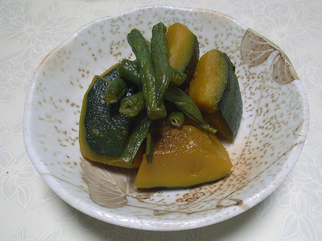 かぼちゃとインゲンの含め煮 甘辛い煮物はいつも食卓にあってあきない味。