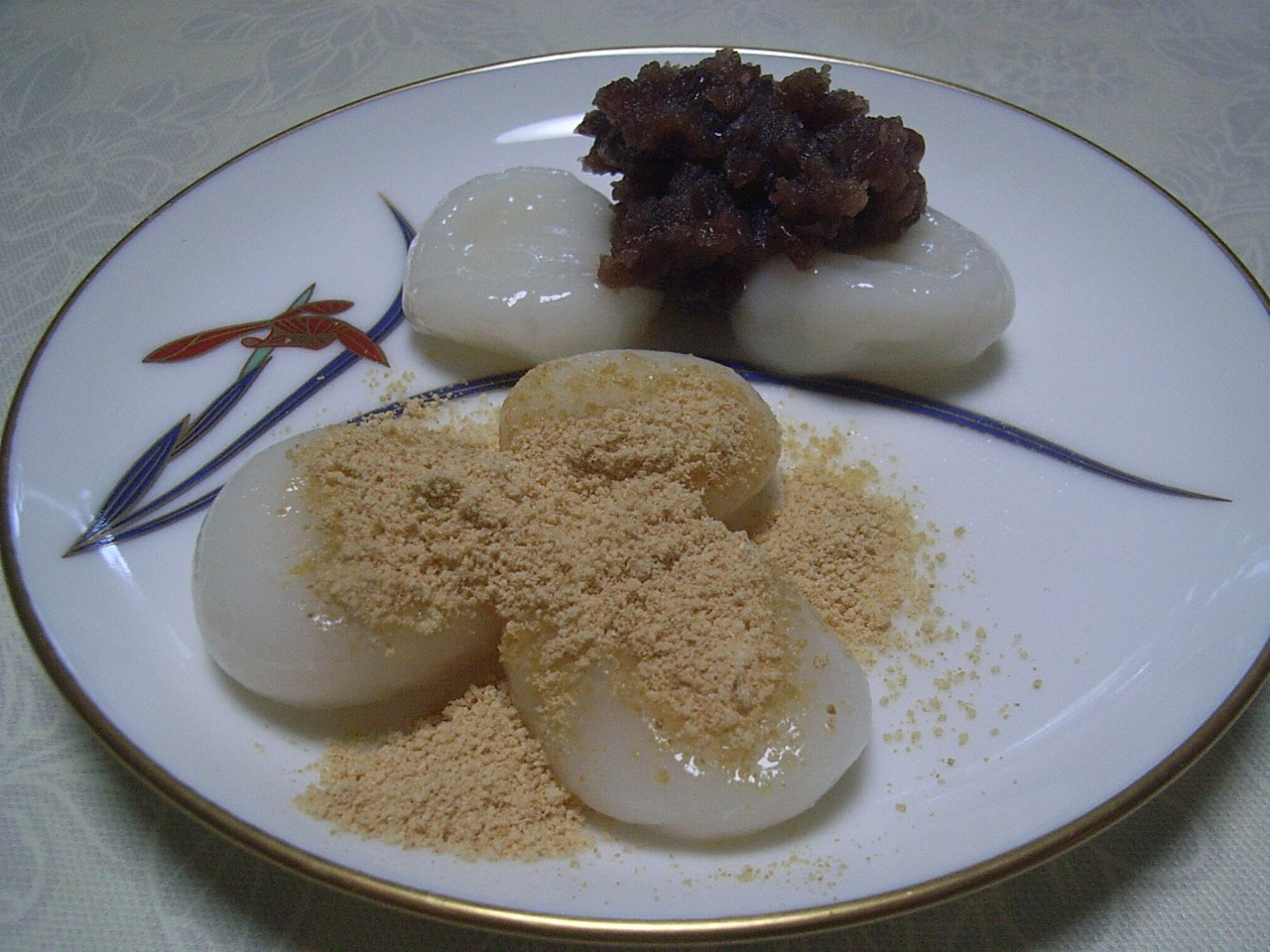 - きな粉、餡をそれぞれにのせる。