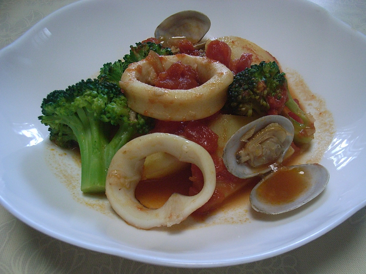 魚介と野菜のトマト煮 簡単、おいしい、ローカロリー、失敗のない魚介料理です。